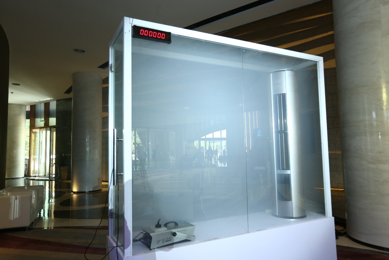 品鑒會現場,海信空調對舒適家系列新品進行了凈化、急速制冷、創新送風模式的演示。在凈化環節中,在安裝了海信舒適家空凈一體空調的密閉玻璃房內釋放濃煙直至整個玻璃房成為“白”色,然后開啟海信空調的凈化功能,玻璃房內的濃煙迅速變淡,44秒后徹底被吸收干凈,在場人士紛紛感慨這是“看得見的凈化效果”,“感覺比空氣凈化器還要快”。