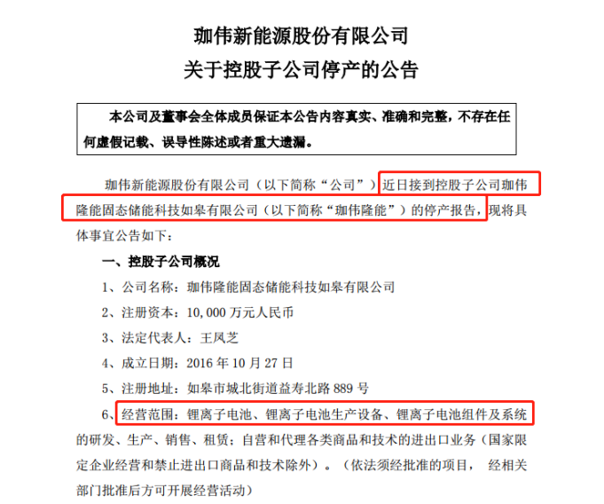 珈偉新能進(jìn)入鋰電池領(lǐng)域可以追溯至2017年,彼時(shí)珈偉新能與如皋經(jīng)濟(jì)開發(fā)區(qū)管委會簽署投資協(xié)議,擬投資不低于6.6億元用于鋰電池項(xiàng)目。但相關(guān)產(chǎn)能在后續(xù)年報(bào)中并有明確披露,大概率未能實(shí)現(xiàn)量產(chǎn)。