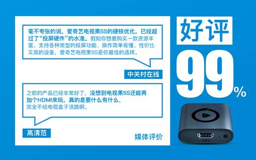 愛奇藝電視果歷經(jīng)四年的硬件升級(jí)和軟件快速迭代優(yōu)化,滿足百萬用戶投屏追劇需求的同時(shí),掀起了AI投屏追劇新風(fēng)尚。隨著電視果5S的發(fā)布,性能和體驗(yàn)全面升級(jí),超前行業(yè)支持DRM硬解和DIAL投屏協(xié)議,開創(chuàng)性的新增HDMI輸入,引領(lǐng)投屏進(jìn)入全新賽道。
