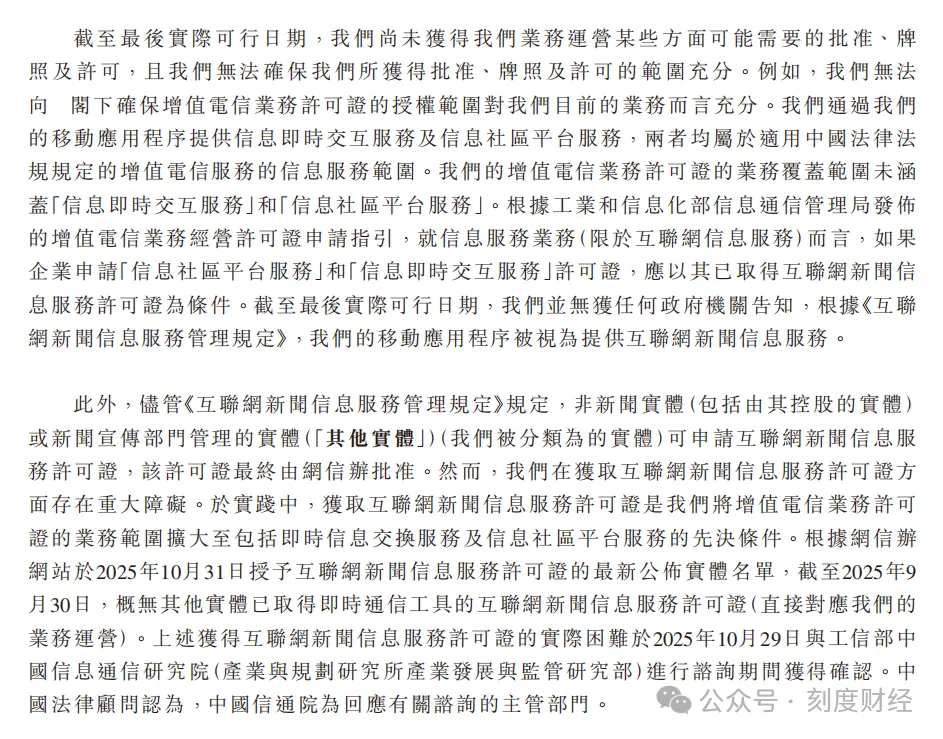 業(yè)務(wù)資質(zhì)瑕疵則是一重隱憂。招股書風(fēng)險(xiǎn)因素中提到,截至最后實(shí)際可行日期,Soul公司現(xiàn)有《增值電信業(yè)務(wù)經(jīng)營(yíng)許可證》未覆蓋信息即時(shí)交互服務(wù)和信息社區(qū)平臺(tái)服務(wù)。