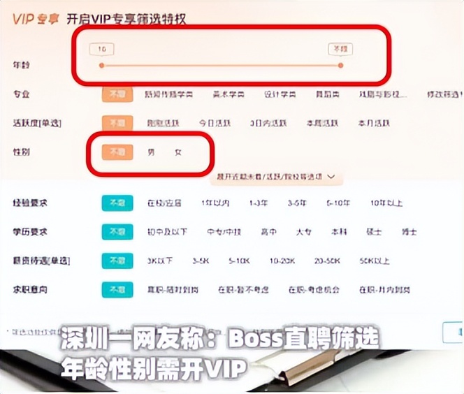 BOSS直聘篩年齡性別都要先開VIP,客服回應稱需買VIP權利包,后續是否調整以平臺顯示為準