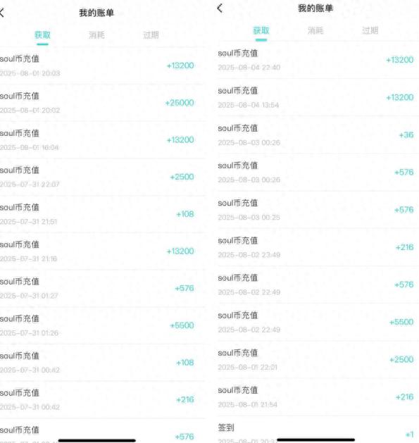 小陳在外甥女的手機中看到的Soul幣充值記錄