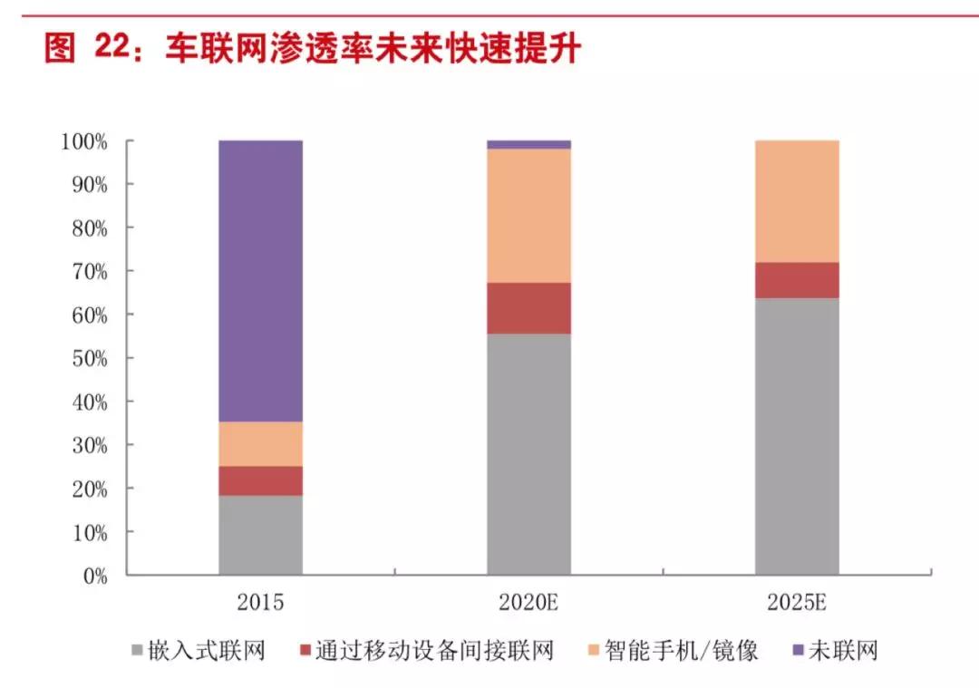 原因很簡單,越來越多的整車廠商會采用車聯(lián)網解決方案,市場即將進入爆發(fā)期。未來汽車搭載車聯(lián)網操作系統(tǒng)就像是2010年左右智能手機取代功能手機的過程一樣。