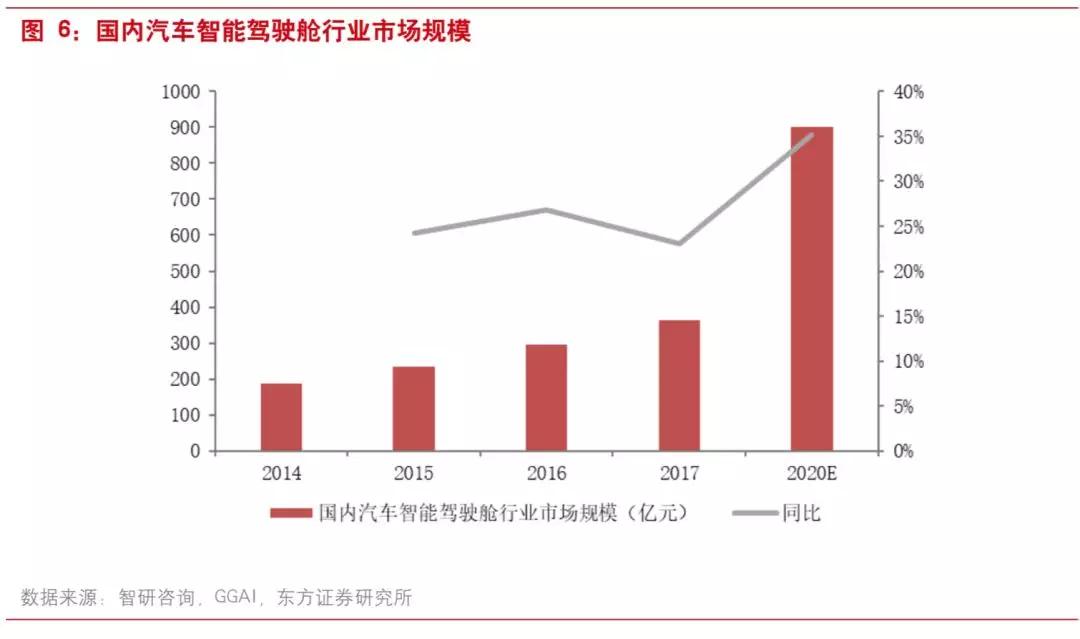 這個過程將非常迅猛。根據(jù)智研咨詢和GGAI 的數(shù)據(jù),2014年至2017年之間,汽車智能駕駛艙行業(yè)市場規(guī)模從188億元增長到364億元,年均增長24.7%。