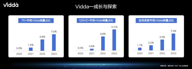 據(jù)了解,在電視行業(yè)普遍不景氣的環(huán)境下,其中一個(gè)新品類卻出現(xiàn)了逆勢(shì)增長(zhǎng)的勢(shì)頭。根據(jù)奧維數(shù)據(jù),2023年1-7月高刷新率(120Hz+)電視銷量規(guī)模為431.8萬臺(tái),同比提升達(dá)85.4%。作為主打高性能游戲功能的高刷電視,面世后就獲得年輕群體的歡迎,并且成為電視行業(yè)的重要增長(zhǎng)動(dòng)力之一,而海信旗下年輕科技潮牌Vidda在其中的推動(dòng)是顯而易見的。
