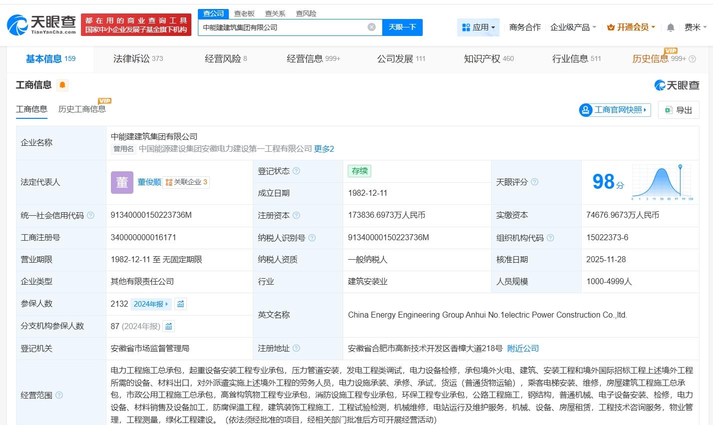 中能建建筑集團有限公司成立于1982年12月,法定代表人為董俊順,經(jīng)營范圍包括電力工程施工總承包、起重設備安裝工程專業(yè)承包、壓力管道安裝、發(fā)電工程類調(diào)試等。股東信息顯示,該公司現(xiàn)由中國能源建設集團華東建設投資有限公司及上述新增股東共同持股。