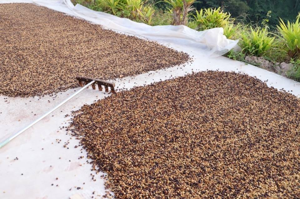 ▲在云南普洱的咖啡莊園,咖啡正在進行日曬處理