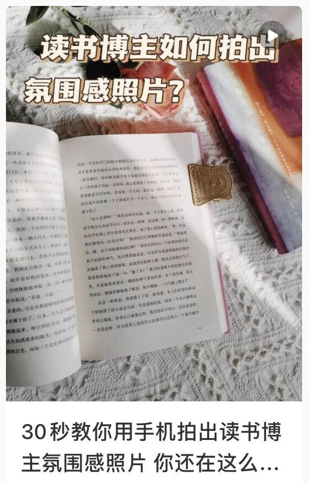 這在小紅書體現得也很明顯。部分小紅書的讀書博主,除了推薦書本身,更重要的是營造一種美好的、生活氣息濃厚的氛圍感。不知道你有沒有刷到這樣的場景: