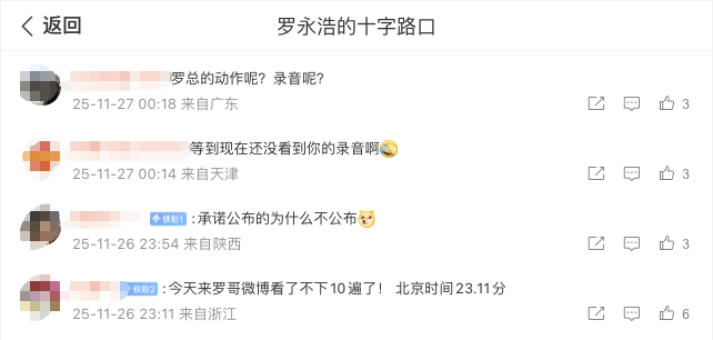 在羅永浩的微博下,不少網(wǎng)友留言在坐等羅永浩公開錄音。