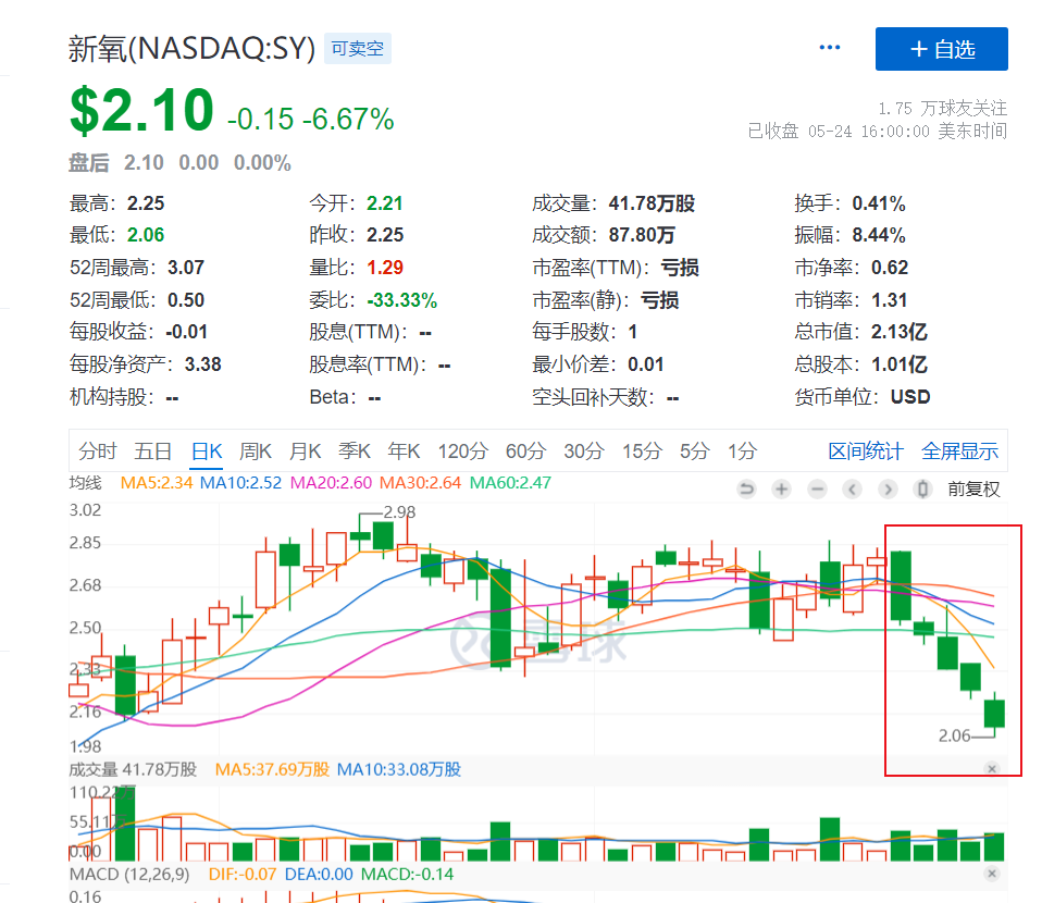 從新氧目前股價變化情況來看,在發布Q1財報的這幾天時間,新氧的股價出現連續大幅下跌的情況,截止發稿前,仍未止住頹勢。