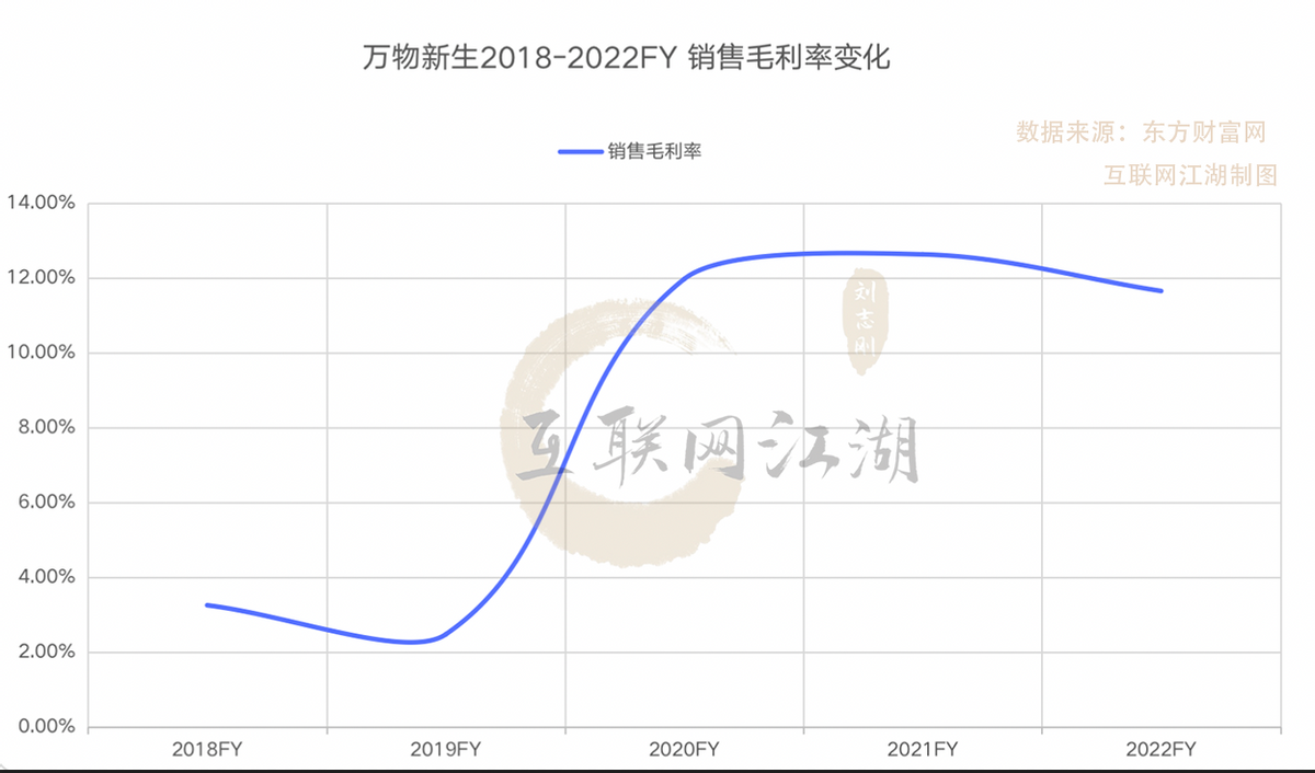 把時間線拉長來看,2020年愛回收的銷售毛利率還有11.97%,到2021年微增到12.6%,2022年毛利率又下滑到11.65%,這說明,毛利率有起伏,而且對比成本投入,10%左右的毛利率其實不怎么高。